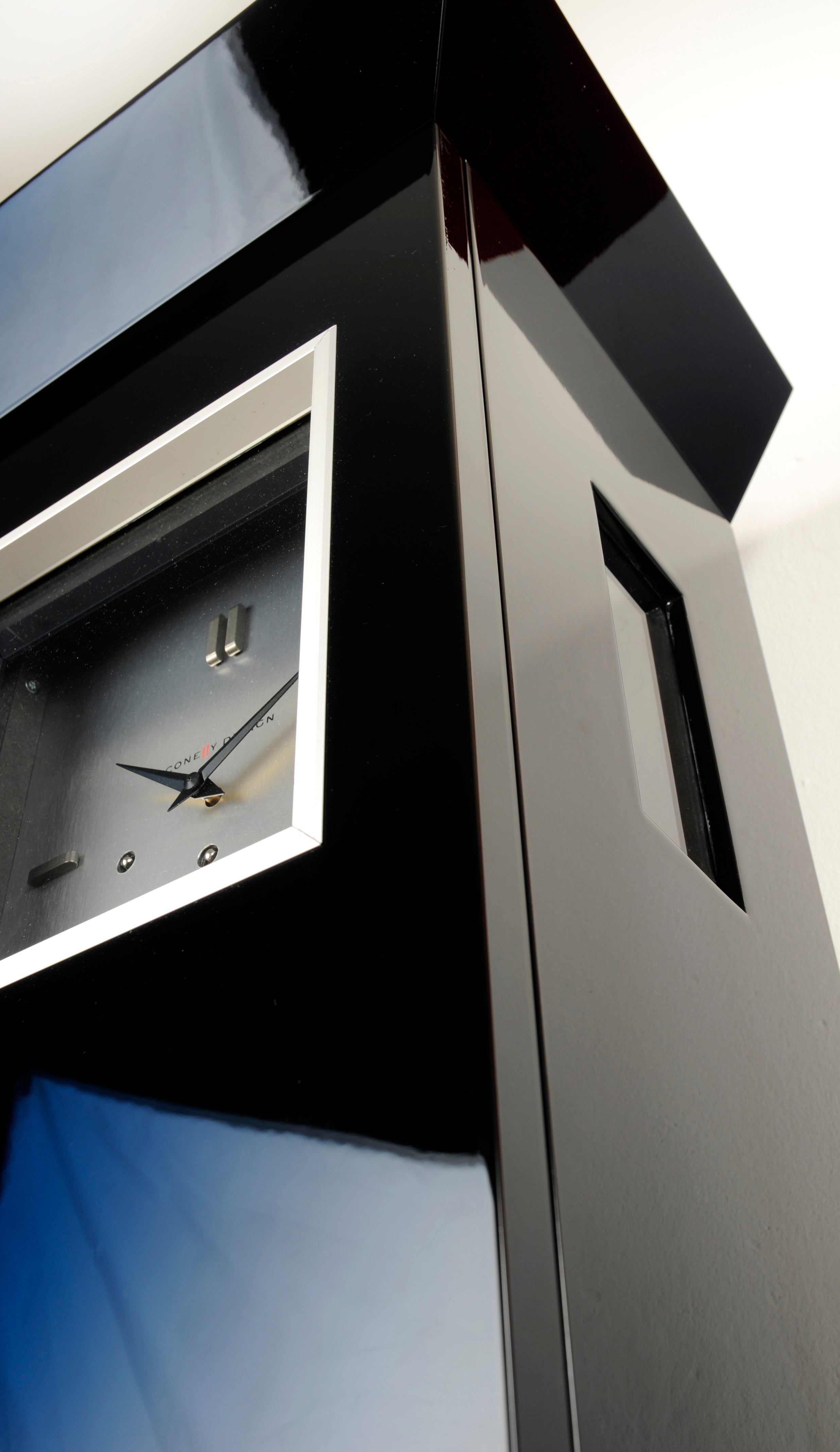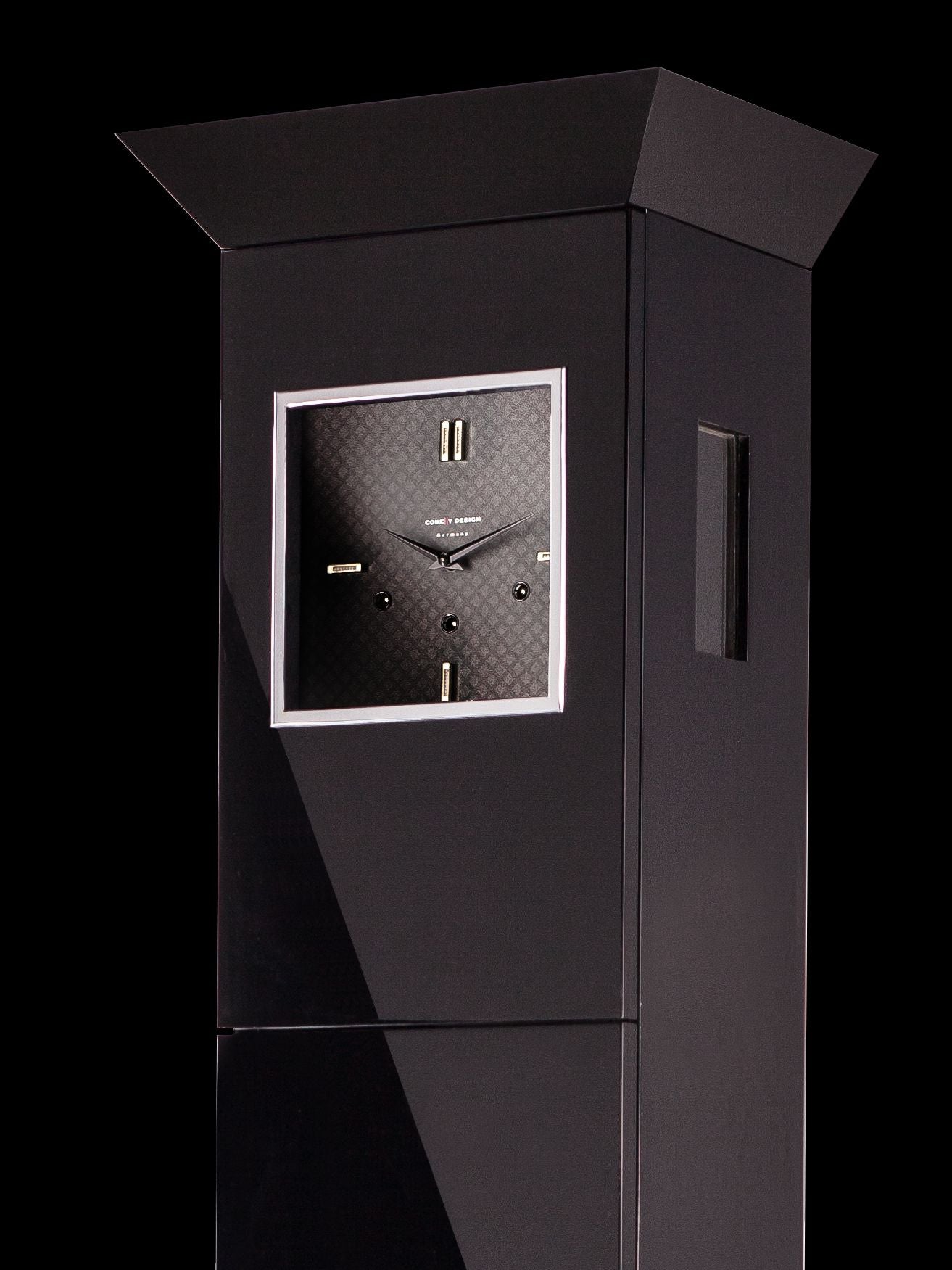 Unsere exklusiv gefertigten Korpusse mit 3-türiger Front werden in aufwendiger Mehrschichtlackierung und bester Tischler-Qualität gefertigt. Der mittlere und untere Fachbereich hinter den Türen kann mit diversen Optionen ausgestattet werden, das obere Segment hinter dem Zifferblatt ist dem mechanischen Uhrwerk vorbehalten. Der obere und untere Korpusabschluss (Sockel / Kranz) ist im Vergleich zur kubischen Variante (siehe Modell SQUARE) in angeschrägter Form ausgeführt und vereint auf diese Weise klassische Ansätze in Kombination mit geradliniger Schlichtheit. Jedes Stück wird individuell nach Kundenwunsch gefertigt und wird somit unweigerlich zum Unikat. Nehmen Sie Einfluss auf Farbe, Oberfläche, Zifferblatt, Rahmen, Interieur, Verglasung und Uhrwerk.