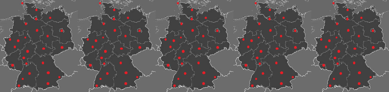 Sylt, Hamburg, Bremen, Berlin, Hannover, Düsseldorf, Köln, Frankfurt/Main, Leipzig, Stuttgart, Nürnberg, München, Weil a.R./Basel (weitere auf Anfrage)