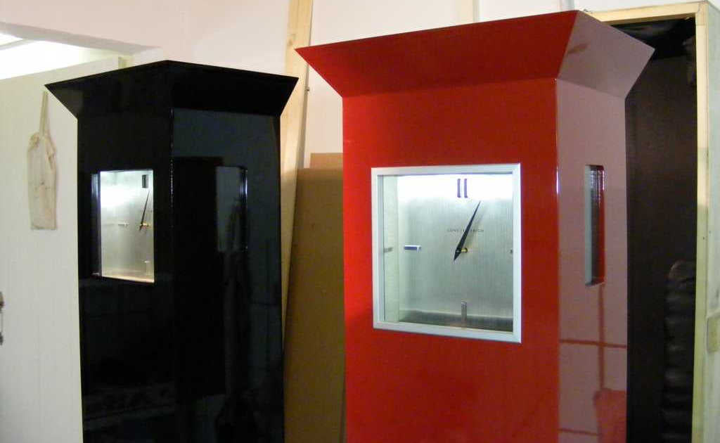 Doch insbesondere die Einzigartigkeit stellt uns als kleinen Hersteller auch vor ganz besondere Herausforderungen. So mussten von Anfang an diverse Bauteile für unsere Stücke komplett neu konstruiert und designt werden. Und auch wenn unsere exklusiven Zeitmöbel von außen betrachtet optisch ganz schlicht und geradlinig daherkommen, so stecken diverse Eigenheiten im verborgenen Detail - von dem aus einem einzigen Metallblock gefrästen Zifferblattrahmen, bis zum in Handarbeit geschnittenen Holzrahmen oder den integrierten Cigar-Humidor. Natürlich gibt es heutzutage unzählige Design-Möbel welche simpel gefertigt werden können - gleich ob Massenware oder Hochpreismöbel. Standuhren jedoch, ganz gleich ob antik oder neu, sind heute eine absolute Rarität und spezifische Bauteile sind es deshalb ebenso. Aus diesem Grund wird jedes unserer Stücke in eigener Werkstatt mit Sorgfalt einzeln hergestellt – wie vor 200 Jahren.