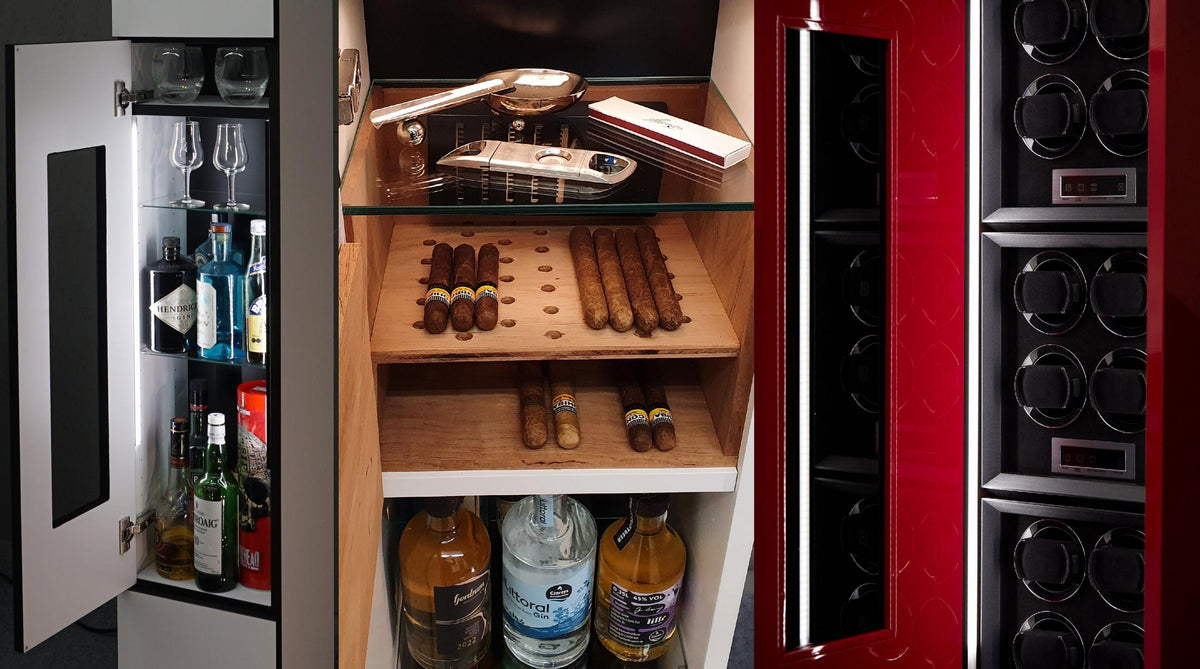 Uhrenbeweger  Mini-Bar/Vitrine  Cigar-Humidor  Türverriegelung  Mini-Safe